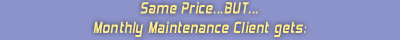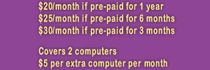 By subscribing to our monthly maintenance program, we will install customized scripts that help keep your computer cleaned out and running smoothly. Along with this, you may contact us and schedule one hour of technical support each month. Additional hours of support after your initial hour are 1/2 off our normal hourly rate.